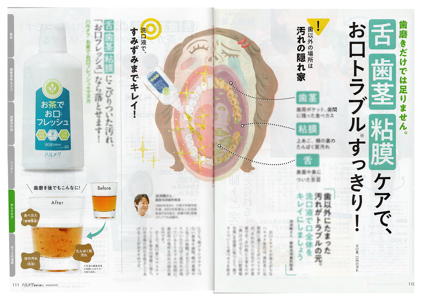 雑誌 ハルメク 健康と暮らし 「舌 歯茎 粘膜ケアでお口トラブルスッキリ!」